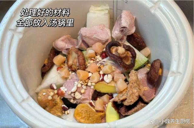 已经迈入四月天,正是阳光明媚的好日子,气温非常稳定,草儿和花儿都生长旺盛,大街小巷非常热闹,感觉很多人都出门踏青,感受到大自然的美景,各行各业都在繁荣发展。春季来临以后,我们的身体处于困乏的阶段,再过几天就要迎来谷雨节气,雨水会开始增多,导致肝火旺盛,湿气会非常重,免疫力很低下。人到了中年,各种疾病都会找上门,湿气是百病的根源,一定要抓住好时间,加强有氧运动,赶跑体内的湿气,早食早受益。今天分享一款祛湿的汤品——冬瓜胡萝卜芡实薏米排骨汤,汤色非常好看,鲜美极了,祛湿效果也不错,赶快学起来吧。谷雨将至,建议要多喝这汤,健脾祛湿,补足营养,身体很轻松。  【冬瓜胡萝卜芡实薏米排骨汤的详细做法】 食材明细:选购几个干香菇(很多地方又叫花菇,是一种食用菌,非常容易储存,泡发后可以用来煲汤,让汤品更加鲜美),选购一大块老冬瓜(冬瓜是一种价格便宜的蔬菜,热量和脂肪含量低,冬瓜可以烹饪成很多美食,冬瓜汤是不错的吃法),陈皮一块,胡萝卜一根,冷水和温水少许,无花果几个,瑶柱15克左右,薏米和芡实各25克,新鲜猪排骨350克左右,少许料酒,生姜一大块,食盐和胡椒粉若干,其他调味品。