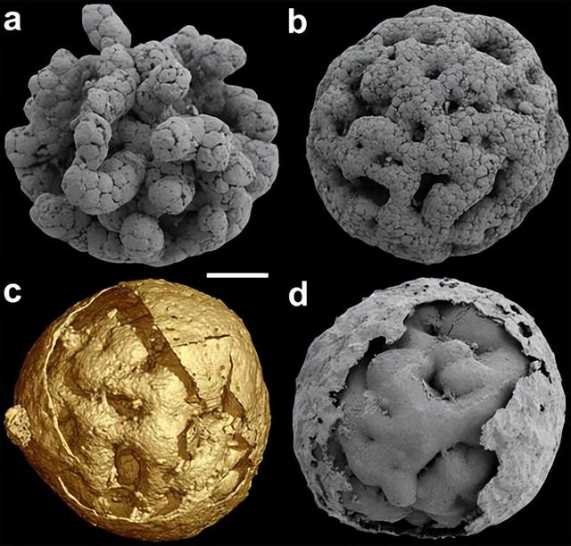 中科院南京地质古生物研究所副研究员伊宗军介绍,他们在贵州瓮安发现了一种名叫它们来自非常古老的埃迪卡拉纪,距今已经过去了6.1亿年。 利用先进的数码技术,科学家通过电子超高分辨率同步辐射三维成像重构了上百个笼脊球,其中包含着各种不同的发育阶段,基本在0.5毫米-0.8毫米之间,虽然个头不大,但内部依然保留了精美的多细胞结构。 球状的外壳下是实心的内部,有两层保护膜,外层膜较厚,内层较薄。较薄的内层里包裹着一个独特的结构,它们是由较小的细胞和组织形成的球形笼,放射状的细胞链把它们一条条地分隔开了,从内部结构看这些组织非常像一个鸟笼,因此也得名笼脊球。