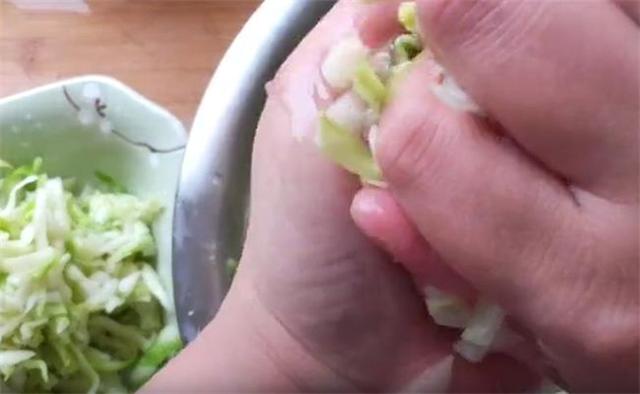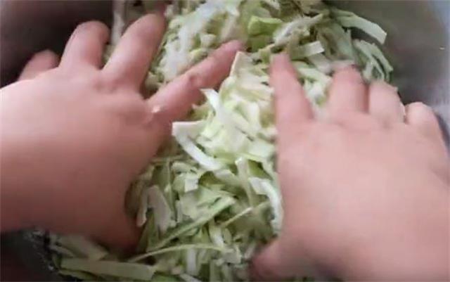 5.腌制好的包菜攥出水分,这样能够去除一部分水分和生味。