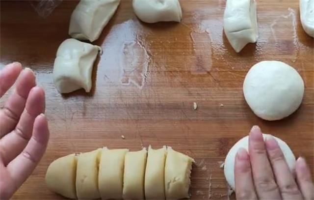 8.醒好的面直接搓长条,分成小面剂,然后把油酥也等分。