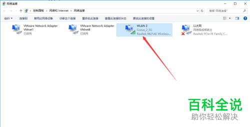 5. 第五步进入【网络连接】页面后,根据下图箭头所指,鼠标右键单击【WLAN】图标,在弹出的菜单栏中点击【状态】选项。