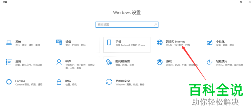 3. 第三步打开【设置】窗口后,根据下图箭头所指,点击【网络和Internet】选项。