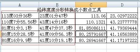教程结束,以上就是关于excel中批量将经纬度度分秒转换成十进制小数点的方法介绍,希望大家看完有所收获!更多精彩,尽在我们网站! |