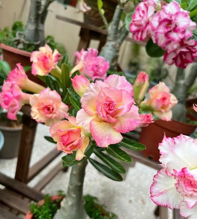 发财树 发财树的枝干非常粗壮,甚至有时候比小腿还要粗,这时候你可能感觉它是一个生命力比较旺盛的植物,但其实并不是,除了比较耐旱之外,还是很娇弱的,尤其是花根特别少,寥寥无几。 当花盆过大时,不利于干湿循环,水分迟迟不能够蒸发,花土永远是处于潮湿的状态,根系便容易发生腐烂。所以培养发财树时,比枝干稍稍大一圈就行,不要选择特别大的花盆。而对于浇水,更需要谨慎,饿着养少浇水,根系会越来越强壮。 沙漠玫瑰