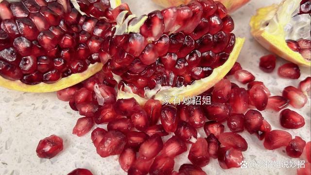 第三种:石榴。 石榴也是秋季的时令水果,它每一颗饱满的石榴籽都像是小小的红宝石,色泽诱人,象征着秋天的丰收与繁荣。石榴不仅美味,还富含抗氧化物质、各种维生素、膳食纤维等,能有效抵御自由基的侵害,保护肌肤健康。而且它还能促进消化、增强免疫力、保护心血管,是秋季滋补的上乘之选。