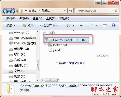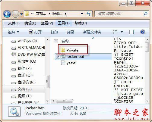 第六步:接着,我们可以双击“locker.bat”文件。然后,将在“隐藏文件”文件夹中建立一个名为“Private”的文件夹(如图4)。你可以将任何需要隐藏的文件放置到该文件夹。