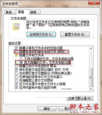 第七步:我们再次双击“Locker.bat”文件可以让“Private”文件夹中的内容消失。在出现的命令提示符窗口输入"Y",回车即可(如图5)。这时,我们发现该文件夹隐身了。不过,我们可以在资源管理器单击“组织→文件和搜索选项”命令打开“文件夹选项”窗口,切换到“查看”标签,去除“隐藏受保护的操作系统文件”选项,选择“显示隐藏的文件、文件夹和驱动器”(如图6),确定退出后让“Private”文件夹现身。这时,该“Private”文件夹变成了 “Control Panel.{21EC2020-3AEA-1069-A2DD-08002B30309D}”文件夹,显然是一个系统隐藏属性的文件夹了(如图7)。
