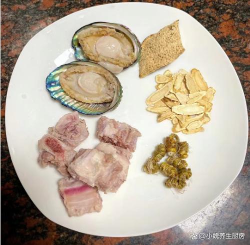 进入四月,外面都是绿油油的一片景色,百花齐放,充满生机勃勃的时候,气血非常亏虚,阳气不足,正是不错的养肝时机,一定要给身体适当地进补,才能维持日常生长的所需营养,增强身体的免疫力。作为广东人,特别喜欢煲汤喝,各种食材都是煲汤的选择,排骨就是其中之一,今天准备搭配鲍鱼煲汤喝,它就是黄芪石斛鲍鱼排骨汤,简单炖一锅,汤品巨鲜美,营养好喝不油腻,别不懂吃,赶紧学起来吧。四月,这汤使劲吃!一养肝,二明目,三强免疫,舒服度过春天。  【黄芪石斛鲍鱼排骨汤的制作小诀窍】 挑选一些食材:选购新鲜鲍鱼100克(鲍鱼是一种常见的海鲜,与海参齐名,以前很多人吃不起,鲍鱼是不错的美食食材,肉质非常肥美,肉质细嫩,它富含蛋白质、多种维生素和微量元素,尤其是牛磺酸的含量居各种食物之首,可以用来烹饪成各种美食,炖汤能够保留原汁原味,让汤品超级鲜美),挑选新鲜排骨250克(排骨是猪肋骨中间的部位,非常受年轻人的喜欢,许多人拿来清蒸,红烧或煲汤,我们家每周用来煲汤喝),铁皮石斛15克,青橄榄几个,冷水和温水少许,陈皮一大块,黄芪25克左右,一大块老姜,食盐少许,一丢丢胡椒粉,其他。 详细制作过程: 第一:提前选购好黄芪,石斛,鲍鱼和排骨等食材,先把黄芪清洗干净,生姜去皮切成若干片状,备用。第二:把石斛用冷水泡一泡,控干表面的水分,陈皮放在容器里,加上适量温水浸泡,刮掉一层的白色物质,洗净备用。