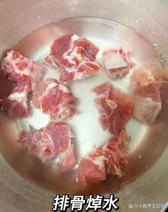 详细制作过程: (www.ws46.com) 1:提前准备好新鲜猪骨,无花果,芡实,薏米和其他食材,先把无花果用温水泡发,生姜去皮切片。2:先把粉葛的外皮处理干净,削掉外皮洗净,切成若干滚刀块,茯苓用流水冲洗干净,控干表面的水分。3:猪排骨提前让肉贩处理成块,芡实用清水泡发一会儿,薏米提前泡发一晚上,然后用热锅炒一会儿,炒干水分,表面微微焦黄,装在碗中备用。4:提前把红豆清洗几遍,然后放入容器里,加上冷水泡发3个小时,泡好的红豆体积增大,这样更容易煮烂,生姜洗净切片,香葱打成葱结,备用。 5:提前将汤锅洗干净,锅中倒入猪排骨,加上花雕酒少许,放入一些生姜片,把猪骨炖煮一会儿,去掉猪骨的腥味,冲洗掉一层浮沫,捞出放在容器里。