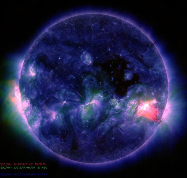 大型太阳黑子由于其强大的磁场和漫长的存在周期,往往会从单纯的黑子演化为太阳耀斑爆发,也就是非常强大的X射线和紫外线将从太阳黑子内喷涌而出,直接朝向地球而来,天文学家相信这种耀斑爆发在历史上已经发生过很多次了。