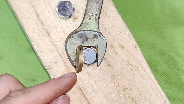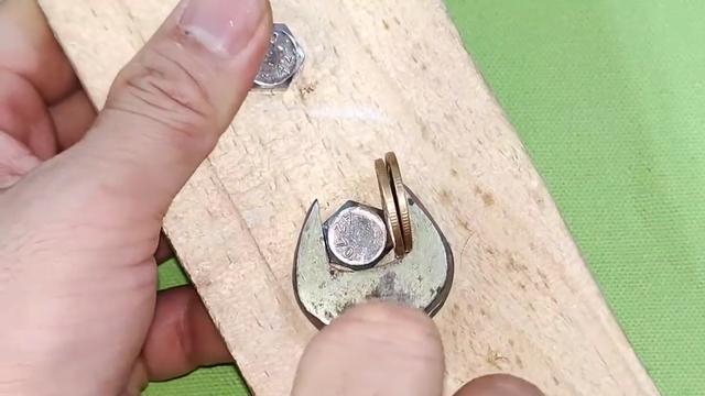 如果仍然无法拧住螺丝,可以尝试垫入两枚硬币。需要注意的是,两枚硬币应该叠在一起,而不是并排放置,这样才能保证硬币与螺丝之间的接触面积最大。在拧紧过程中,硬币会起到类似扳手的作用,帮助我们更好地将螺丝拧紧。直到达到理想的效果。