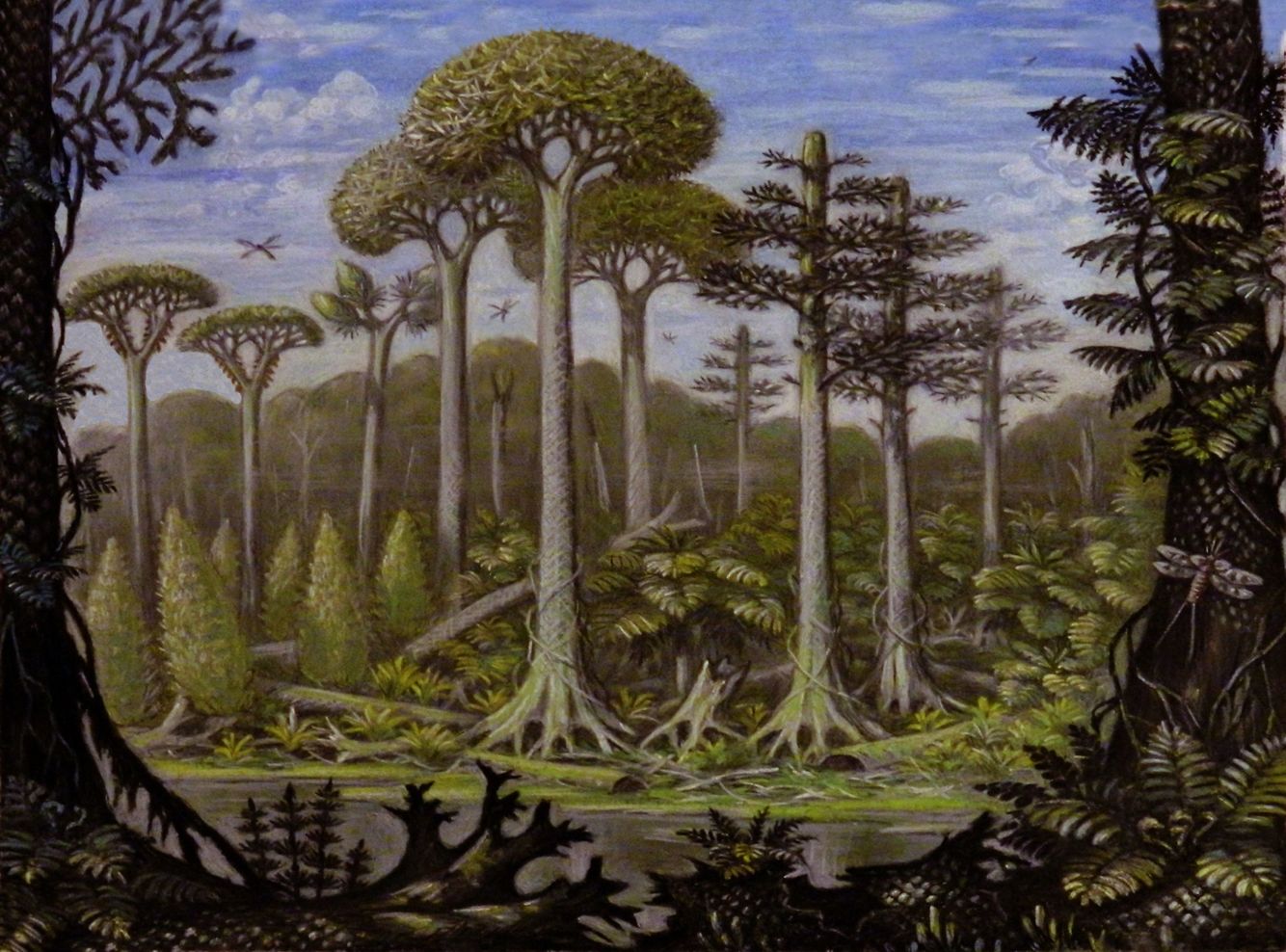 氧气除了能供给生物生存外,还是极好的助燃剂。于是空气开始变得易燃易爆,森林大火接二连三,甚至暴露在地表的煤层也能直接点燃,最后石炭纪末期宛如一片火海,海百合的种类也在此时锐减。