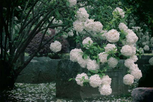 在回去前,特意去了苗木市场,花了1万多买了一棵木绣球树运回去,栽种在了自己的小院里。从此,那棵木绣球就在院子的一角安了家,每年春季都是一树繁花,陪伴着这一户人家有了十多年。直到前年的秋天,准备换房了。院子里的木绣球又长大了不少,找了几波专业的人来,都不敢保证能顺利移到新家,成活率就更不高了,没办法只能一起交给下任主人。