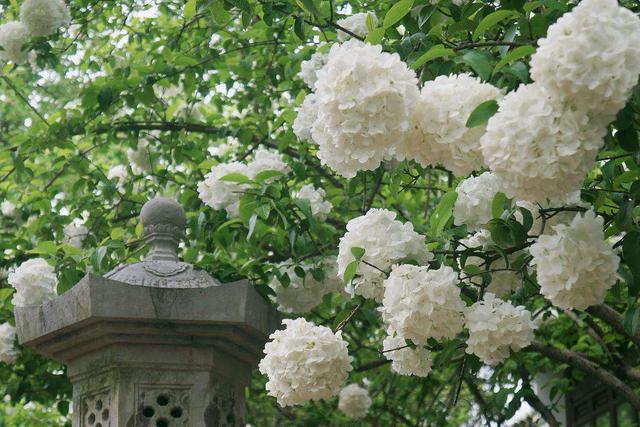 木绣球的全名叫中华木绣球,开花时,满树繁花,非常的漂亮。主要栽培在江苏,浙江一带。像一些古典园林里,公园,庭院里都栽培有木绣球花,古典韵味十足,看着也很大气。因为生长速度比较缓慢,大型的木绣球的价值还是很高的,非常适合在一些小院里栽培。