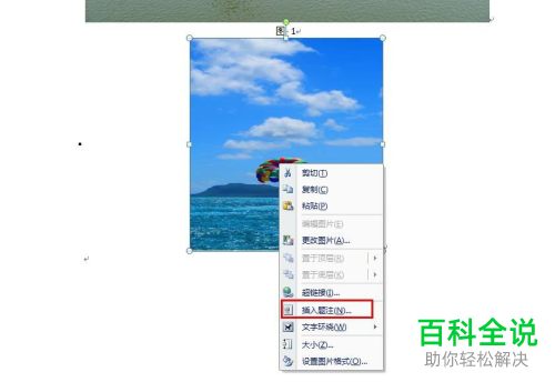 6. 除了上述方法之外,还有其他的方法。第一步,我们选中另外一张图片,然后右键点击图标,并点击弹出菜单中的插入题注选项。