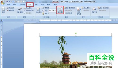 2.第二步,图片准备完成后,点击上方菜单栏中的引用选项,然后在引用工具栏中,点击插入题注按钮。 3. 第三步,点击后将会弹出一个题注设置对话框,题注会自动设置为图表1,然后我们需要选择题注所在的位置。