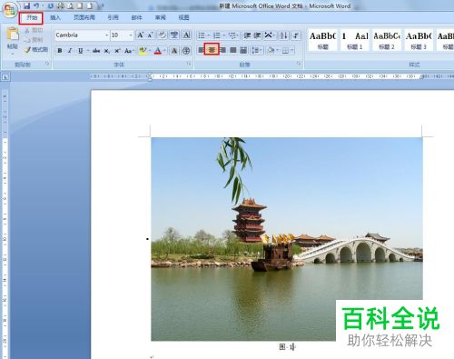 5. 第五步,点击确定按钮后,就可以在图片的下方看到题注了。如果想要调整题注的位置的话,就先点击上方的开始菜单,然后在开始选项卡中进行设置即可。
