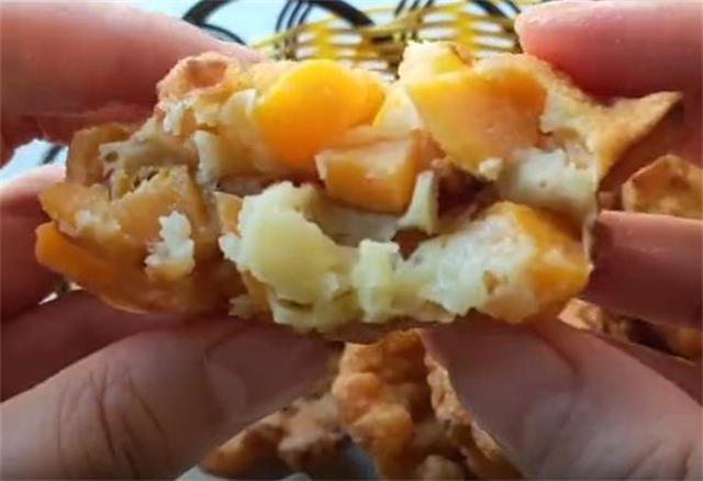 4.全程小火慢炸,先下锅的炸至表皮金黄即可出锅。
