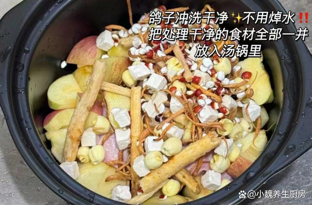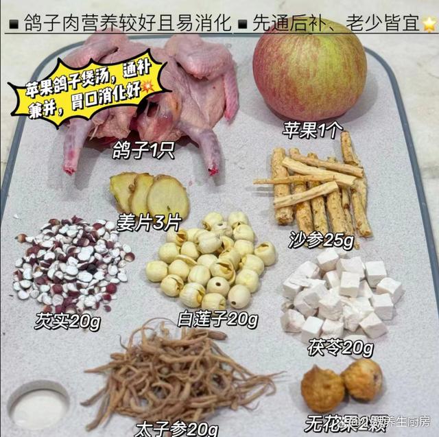进入4月以后,暖春到了,由于各地气温的逐渐升高,人体的新陈代谢加快,身体的消耗能量更加快,早晚温差特别大,人的免疫力变差,会让人白天感到疲惫不堪,晚上却睡不着的情况。其次,春季是万物复苏的季节,也是各种细菌、病毒等微生物繁殖的高峰期。这些微生物会通过各种途径侵入人体,破坏人体的平衡状态,导致身体出现疲劳、乏力等症状。加上我们生活和学习压力大增,心情非常焦虑,容易引发春困,这也称为非常正常的现象,我们要调整好作息,注意饮食方面的改变,才能改善失眠的情况。今天分享一款对失眠有帮助的汤品——苹果太子参无花果鸽子汤,鸽子汤比鸡汤更补,搭配苹果和几种食材煲汤,营养又鲜美,别不懂吃。失眠最怕喝“这汤”,4月要常喝它,养心安神,睡眠质量得到提升。  【苹果太子参无花果鸽子汤的具体做法】 选购一些食材:选购一个新鲜苹果(苹果是一种多功能的水果,全年都可以食用,品种非常多,含有大量的维生素C,苹果酸和膳食纤维,每天吃都不会长肉,还能够起到安神的效果,生吃不如煮熟后食用),新鲜鸽子一只(鸽子是常见的家禽之一,比鸡肉用来煲汤更受欢迎,鲜美滋补,对身体很有好处),太子参20克左右,沙参25克左右,茯苓20克左右,冷水少许,纯净水1500毫升,几个干无花果,干莲子一小把,生姜一大块,芡实20克左右,胡椒粉和食盐若干,其他。 详细制作过程: 第一步:提前准备好鸽子,太子参,苹果和无花果等食材,先把干无花果用温水泡发,生姜去皮切成片状,备用。第二步:先把苹果放在容器里,果皮表面涂抹少许食盐,加上少许清水,用盐水泡一会儿,将果皮清洗干净,如果觉得太麻烦,也可以直接去掉果皮。 第三步:苹果从中间切开,去掉苹果核切块,将太子参和沙参清洗干净,茯苓和芡实用清水淘洗干净,放在一边备用。 第四步:干莲子都放在器皿里,用温水泡发几个小时,去掉里面的莲子心,将新鲜鸽子提前处理干净,用盐水泡一泡,逼出里面的血水,控干水分即可。第五步:起锅后倒入鸽子肉,加上适量清水,丢入一些生姜片,加上适量料酒来去腥,把鸽子肉焯烫去腥,捞出用温水冲洗掉浮沫。 第六步:提前准备好煲汤的锅,锅底放入鸽子肉,然后放入太子参,芡实,茯苓,无花果,沙参,莲子和其他食材,记得一次性加上1500毫升纯净水,不要中途加水。 来源: www.ws46.com 第七步:要掌握好火候,中途去掉一层油腻物质,继续小火炖100分钟,这样炖出来的汤品才会鲜美,鸽子肉非常软烂。第八步:出锅之前加上食盐和胡椒粉来调味,用勺子迅速搅动,焖煮一分钟就可以出锅了。 苹果太子参无花果鸽子汤是一款安神醒脑的汤品,失眠非常怕这碗汤,调理肝肾和气血,养心安神,保护神经系统,睡眠质量快速提升。 网友们,你们是否掌握这款苹果太子参无花果鸽子汤的烹饪技巧吗?(文中的配图全部出自网络)