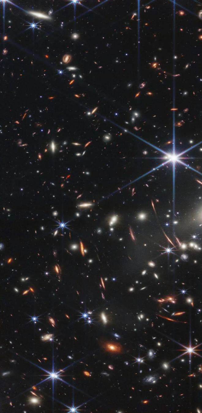 这张照片被亲切地称为“韦伯第一深场”,是迄今为止最清晰最遥远的宇宙红外图像,图中的星系编号为SMACS 0723,来自距离地球51.2亿光年外的一个星系团,画面中的黄白色天体实际上是上千星系共同发出的光芒。