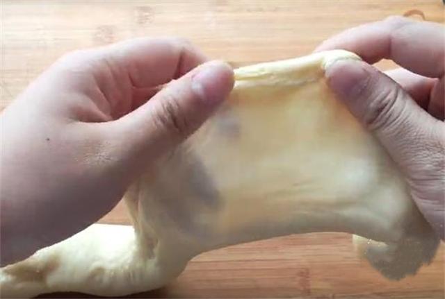 3.做这个千层小面包最关键的一步就是一定要揉出膜,要不然和馒头就没有区别了,揉到这种程度就可以。