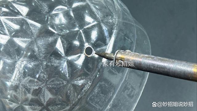 2,纸巾盒。 油桶切割好的最顶部的一段,也就是带有提手的那部分,我们还可以将它改造成一个纸巾盒。先用电洛铁在油桶的两边分别戳上一个筷子大小的洞。