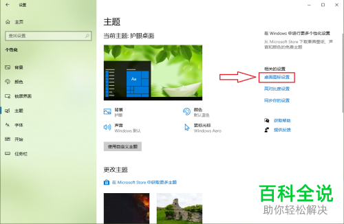 4. 在右侧打开的页面,相关的设置下,点击【桌面图标设置】的选项。
