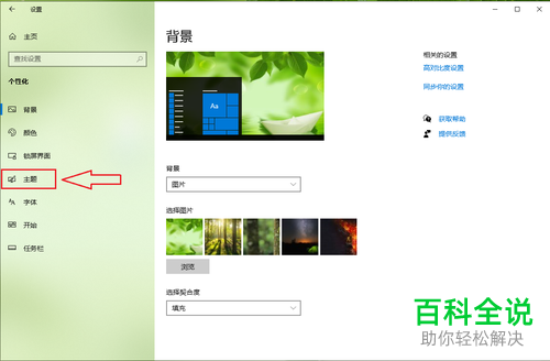 3. 在打开的个性化设置页面,点击左侧的【主题】选项。