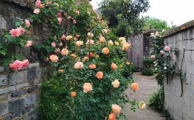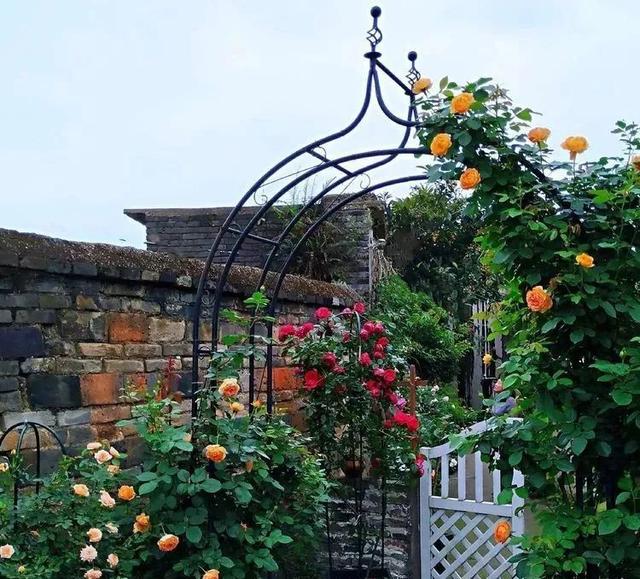 走过小院的过道,就来到了转角的地方,这里女主搭建了一个欧式的拱门,拱门的花卉是一款叫做蜂蜜焦糖的欧月,颜值非常的高。