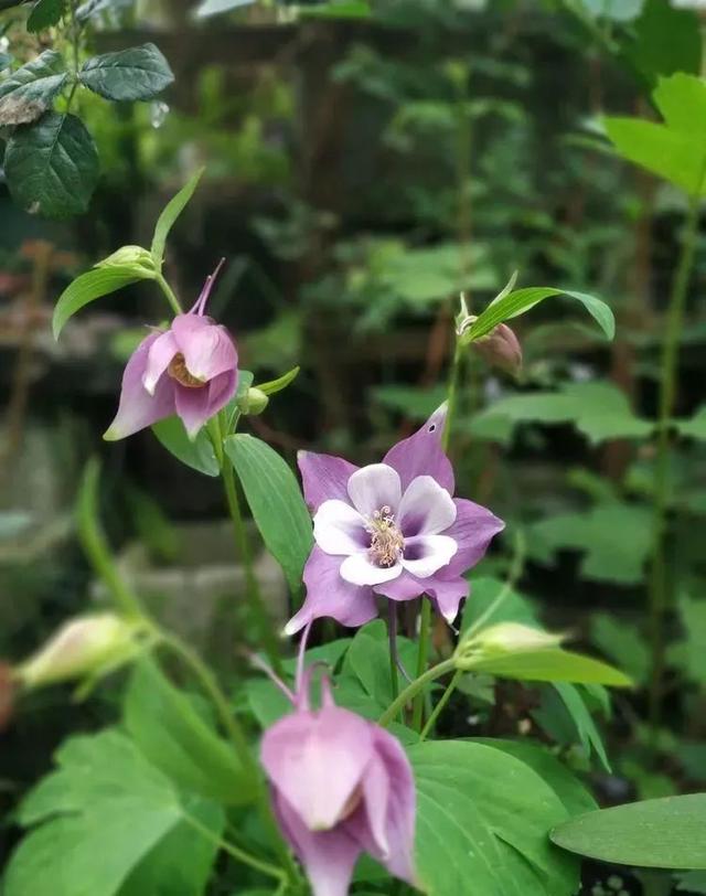 耧斗菜,以前在野外非常的多,但是近些年被人工培育后,园艺品种更加适合家庭栽培,在小院里栽上一些花型奇特的耧斗菜,和三大主角搭配起来,非常的协调。
