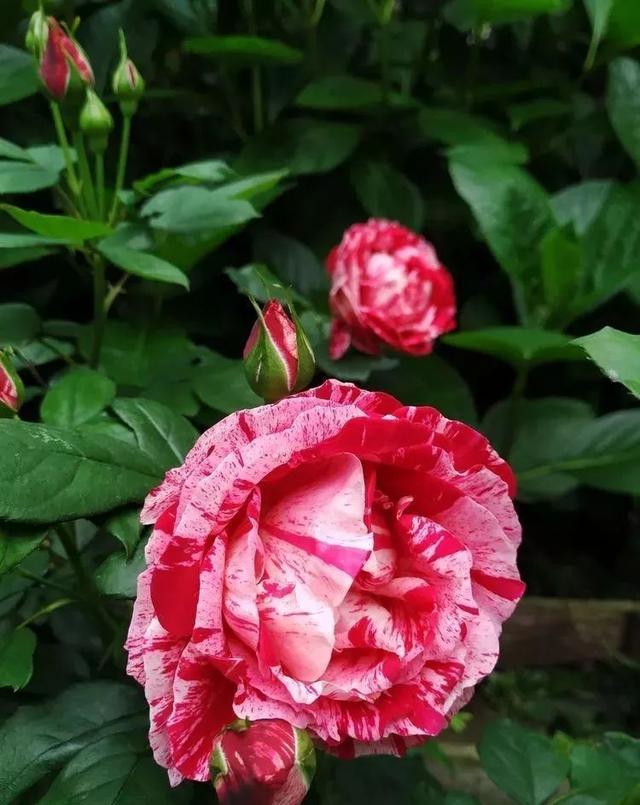 还有像节日礼花,一款不多见的混色花瓣月季,花瓣上有放射状的斑纹,个人觉得,它比欧月的狂欢派对要漂亮得多。