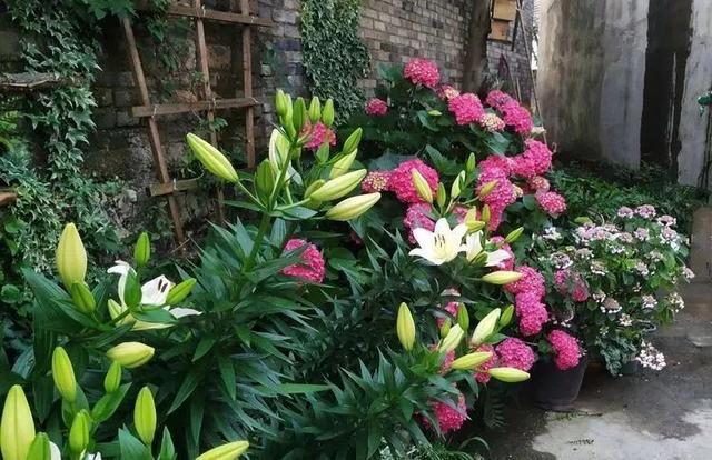 还有像洁白高雅的百合花,就这么静静地待在绣球花旁边,等到盛开的那一刻,整个小院都能闻到它的香味。