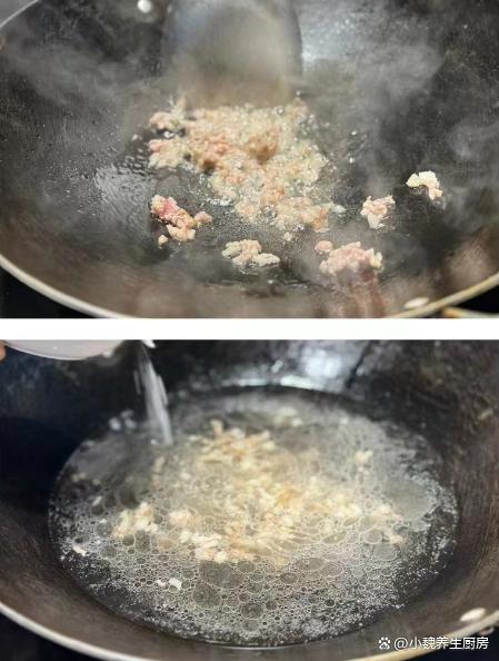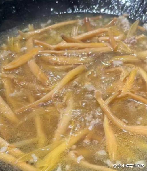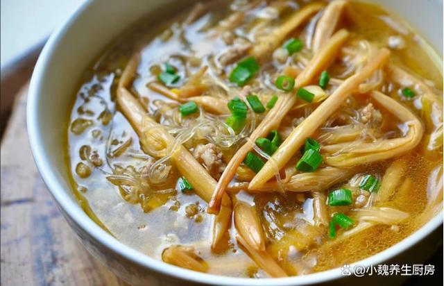 第五步:锅底烧热后,加上少许食用油,放入葱白和姜末,倒入猪肉末煸炒一会儿,让猪肉末炒至变色。 (www.ws46.Com) 第六步:加上适量开水再次煮开,下入黄花菜一起煮,加上半勺味极鲜,让汤汁煮至变黄。 第七步:最后下入粉丝,调入鸡精半勺,食盐少许,胡椒粉半勺,最后丢入一些葱花即可,这道肉末黄花菜粉丝汤就制作完成了。 肉末黄花菜粉丝汤是一款十分鲜美的汤品,主要选用黄花菜,猪肉和粉丝制作而成,成本并不高,做法特别简单,鲜美极了,补充许多营养,养心安神,喝起来特别舒服,早食早受益。 网友们,你们是否喝过这款肉末黄花菜粉丝汤呢?你们有没有见过黄花菜呢?(本文的全部配图均出自网络)