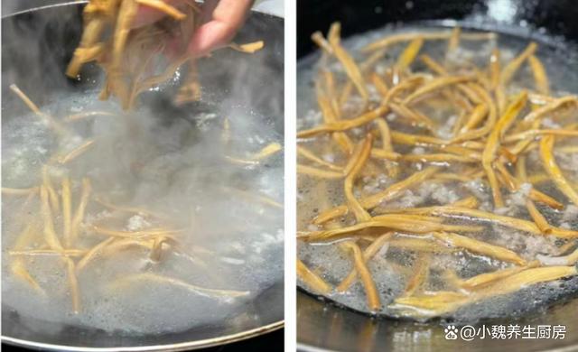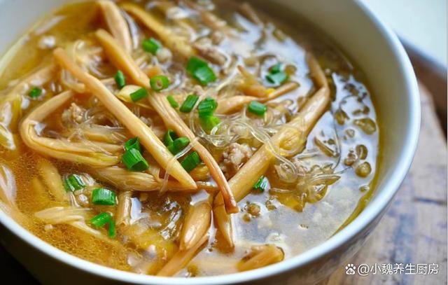 已经迈入崭新的四月,三月是花开遍地的时候,4月也并不落后,雨水慢慢增多,气温逐渐升温,舒服的气候会让人白天犯困,特别想要睡觉,反而是晚上会睡不着,影响第二天的工作。很多人被失眠困扰,一定不能忽视它,要从饮食上改善,不能总是吃山珍海味,平常可以给家里人尝尝这款家常汤——肉末黄花菜粉丝汤,粉丝很有弹性,汤品超级鲜美,内行人经常吃它。许多人肯定没有喝过这款肉末黄花菜粉丝汤,到底应该如何来制作呢?不妨跟着小编来瞧一瞧吧。失眠要常喝“这汤”,每周吃几次,简单易学,养心安神,增强免疫。  【肉末黄花菜粉丝汤的正确做法】 挑选一些食材:选购一小把干黄花菜(黄花菜分为鲜黄花菜和干黄花菜,晒干后的黄花菜更容易储存,泡发后可以炒食或煮汤,被称为“安神菜”,其中富含大量的氨基酸,维生素和微量元素,可以缓解失眠的情况,夜里睡得更香),新鲜香葱若干根,选购200克新鲜猪前腿肉(猪前腿肉是猪肉最受欢迎的部位之一,价格很便宜,肉质特别鲜嫩,能够制作成很多美食),少许食用油,鸡精和食盐若干,龙口粉丝120克左右(龙口粉丝是粉丝的精品,主要选用绿豆和淀粉制作而成,凉拌和煮汤是我们家的常见吃法),生姜几片,半勺料酒和酱油,生粉一勺,其他。 具体制作步骤:第一步:提前选购好黄花菜,猪肉和龙口粉丝,先把香葱洗净去掉葱须,切成若干小段,备用。 第二步:将黄花菜放在碗中,加上适量温水泡发,掐掉一些多余部位,控干表面的水分,几片生姜切成细末,备用。 第三步:粉丝放在容器里,加上温水泡发几分钟,猪肉去掉猪皮和肥肉,猪肉反复清洗干净,剁碎成猪肉末,放在容器中备用。第四步:猪肉末用料酒去腥,加上生抽一小勺,调入少许生粉,加上一丢丢食盐和半勺鸡精,将猪肉末快速抓拌均匀,放置20分钟左右即可。