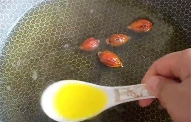 3.锅中加两碗水,加入5到6颗栀子果,这个栀子果具有清热解毒、消寒祛湿、消肿止痛等作用,大火烧开煮3到5分钟之后,我们关火晾凉备用,大家可以看到这个时候的水已经是黄色的了,而这个黄萝卜颜色的主要来源就是这个栀子水。