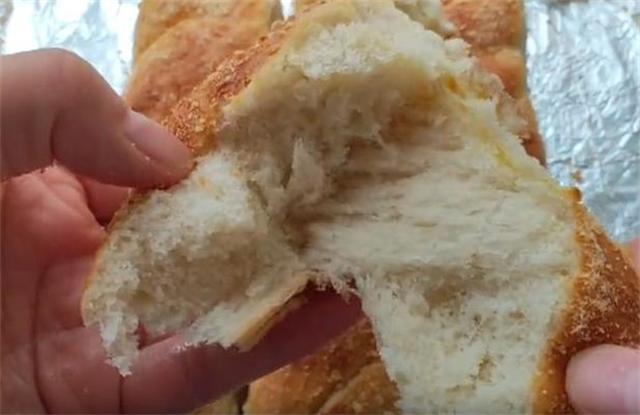 5.我们把面剂抻长搓成长条,这个过程也是面筋捋顺的过程,刚开始搓的时候会有回缩的现象,因为它面筋含量越高,初期搓制时可能会有明显的回缩现象。我们可以让它自然的松弛几分钟,这样搓起来会更容易,而且做出的面包口感也越好,我们把面剂搓长条的过程就是捋顺面筋的过程,这样做出来的才具有拉丝效果的面包。