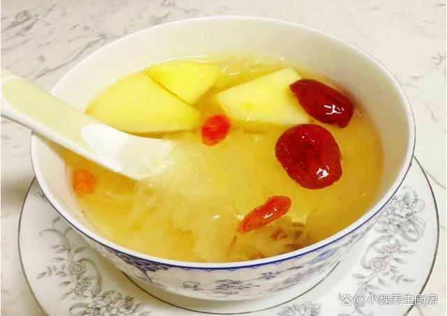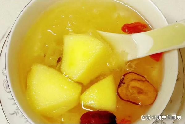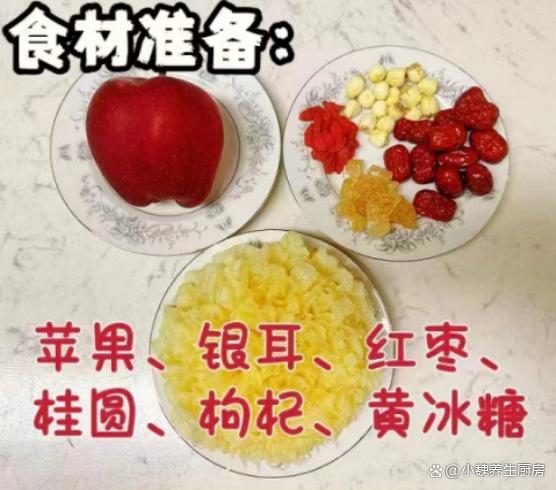 进入4月份,大地开始苏醒了,气温逐渐回升,春意盎然,生机勃勃的样子,这个时候气温逐渐升高,人体的新陈代谢加快,肝火非常旺盛,气色会非常差,脸部会长斑,抵抗力非常差。到了春季,蔬菜和水果都不能少,吃不完的苹果可以煮熟后食用,食疗价值会更高。今天准备用苹果,莲子,红枣和银耳制作一款甜汤,喝起来特别甜美,入口甘甜,尤其是女性朋友要多喝它。许多人不会制作这款苹果红枣莲子银耳羹,到底要如何制作呢?想要晚上睡得安稳,一定要学一学吧。四月,苹果和它煮一锅,等于“安神汤”,补血安神,肌肤更年轻。  【苹果红枣莲子银耳羹的具体做法】 挑选一些食材:选购几个红枣(红枣又叫大枣,红枣是一种红彤彤的果实,干制后很容易储存,红枣从中医来讲,被视为滋补养颜和补血补气的食材,可以用于治疗贫血、失眠、脾胃虚弱等,可以煮粥、炖汤、制作糕点等,生活之中非常常见),苹果250克左右(苹果又叫安神果,果肉特别清甜脆口,汁水丰富,富含许多微量元素,平常一定要多吃苹果),慌冰糖20克,枸杞子少许,桂圆肉25克左右,干莲子30克,银耳40克左右,冷水和温水少许,其他。 具体制作步骤: 摘自: www.ws46.com 步骤1:提前选购好苹果,红枣,银耳,莲子和其他食材,苹果用工具去掉果皮,从中间切开,去掉苹果核切成小块,放在容器备用。 步骤2:红枣洗净去掉核,用剪刀剪成小块,干莲子用温水泡发,取出里面的莲子心,备用。步骤3:将枸杞子洗干净,银耳放在容器之中,加上适量温水泡发,用剪刀去掉根部的黄色部位,剁碎成一些小段,备用。 步骤4:准备好一个炖锅,锅中放入一些银耳,加上适量纯净水,用压力锅将银耳炖煮40分钟。 步骤5:让银耳煮出胶质,用勺子迅速搅动,放入一些苹果块,红枣,桂圆,莲子和冰糖,中途可以多加一些水,继续炖煮20分钟。步骤6:让其煮至软糯浓稠,加上一些枸杞子,焖煮一小会儿,关火放到常温即可,这款苹果红枣莲子银耳羹就烹饪完成了,女性朋友要多喝它。 苹果红枣莲子银耳羹的小贴士:首先,选择新鲜的食材是非常重要的。苹果应该选择新鲜、口感脆嫩的品种,红枣则应该选择饱满、颜色鲜艳、无虫蛀的。莲子和银耳也要选择优质的产品,以确保口感和营养价值。其次,注意火候的控制。在煮羹的过程中,应该先用大火将材料煮沸,然后转小火慢慢炖煮,以保持食材的营养成分和口感。同时,也要注意搅拌的频率,避免食材糊底或煮烂。另外,根据个人口味,可以适量添加一些调料,如冰糖、枸杞等,以增加羹品的口感和营养价值。但是要注意不要过量添加,以免影响食材本身的味道和营养价值。 苹果红枣莲子银耳羹是一款甘甜的水果羹,主要选用新鲜苹果,红枣,莲子和银耳制作而成,具有很强的滋补效果,食材的营养都在汤里,滋润皮肤,延缓衰老,补血养颜,肌肤更加年轻,早食早受益。 网友们,你们是否学会这款苹果红枣莲子银耳羹的具体做法吗?(文中的配图都出自网络)