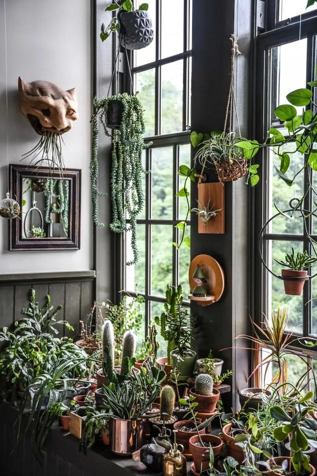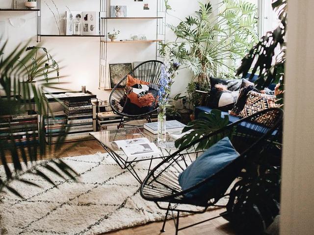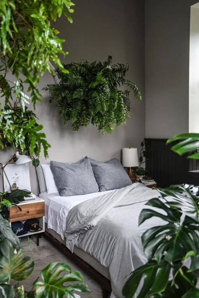 我就想问下,卧室里摆着这么大的龟背竹和春羽,墙上还挂着蕨类植物,真的不受影响吗? 平时该怎么养护呢?所以,主人家肯定是个爱布置的人,特别像墙上挂着的花卉植物,肯定定期都需要移出去进行养护、打理,养出状态后,再对室内进行装饰。 这才是满屋子养花卉,该有的样子。