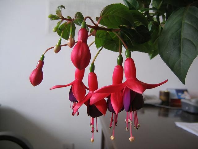 2、倒挂金钟 倒吊金钟是一种很受欢迎的植物,因为它的花色很美,所以也有不少人在养,不过倒吊金钟并不适合夏天,因为它不耐高温,一旦超过三十度,它就会萎靡不振,一副脱水的样子。 如果放任不管,它会一天比一天虚弱,最终死去。若要照顾,可将其搬入有冷气的室内,将其降温至摄氏25度,并洒上水分,使其度过夏季。