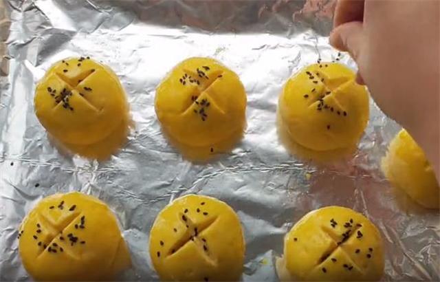 3.最后在馒头表面刷上一层食用油,撒上适量的黑芝麻。