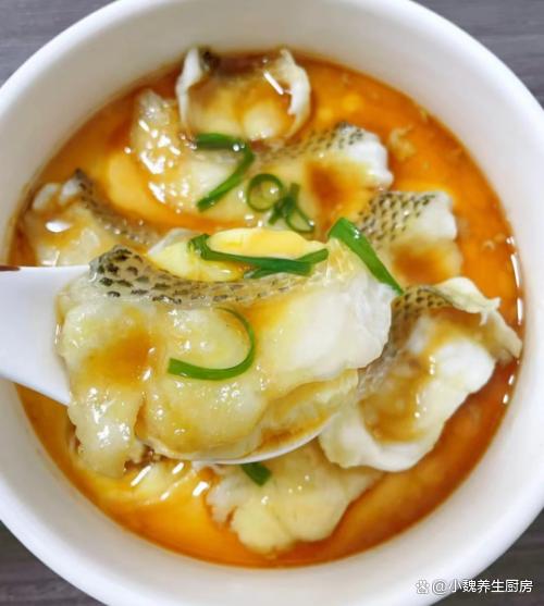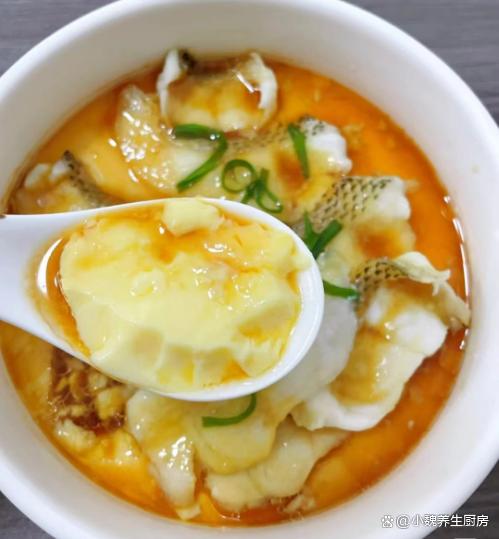 第五步:生姜切成若干薄片,香葱洗净切成葱段,放入到鱼肉之中,加上少许料酒去腥,加上适量淀粉,加上食盐一勺,滴入一些食用油,用水迅速抓拌均匀,把鱼肉腌制入味。 第六步:将鱼肉放入蒸熟的鸡蛋上面,一定要均匀铺开,上锅蒸4-5分钟,关火焖一小会儿。第七步:加上少许原味酱油,撒上一些葱花,淋入一些热油,这款鲈鱼蒸蛋就可以开吃了。 鲈鱼蒸蛋的制作小贴士:首先,选择新鲜的鲈鱼和鸡蛋是制作鲈鱼蒸蛋的关键。鲈鱼应该选择肉质鲜美、鳞片完整、鱼眼清澈的鱼,这样的鱼口感更加细腻,营养价值也更高。鸡蛋则需要选择新鲜的、无裂痕的鸡蛋,以保证蒸出的蛋羹口感嫩滑。其次,在蒸制过程中,火候的控制也是非常重要的。一般来说,蒸制鲈鱼蒸蛋需要使用中火,以避免火候过大导致蒸糊或者蒸散。同时,蒸制的时间也需要根据食材的大小和厚度进行适当调整,以确保食材能够蒸熟、蒸透。此外,蒸制时可以在蒸锅中加入适量的水,以保持蒸锅内的湿度,从而使蒸出的鲈鱼蒸蛋更加鲜嫩。同时,蒸制完毕后,不要立即打开蒸锅盖,应该等待几分钟让蒸汽自然消散,以避免菜品受到冷空气的影响而收缩变形。 最后,调味也是制作鲈鱼蒸蛋的关键。可以根据个人口味添加适量的盐、酱油、胡椒粉等调料,以提升菜品的口感和风味。同时,也可以在蒸制前在鱼身上撒上一些葱花,以增加菜品的香气和美观度。 www.ws46.com 网友们,你们是否吃过这道鲈鱼蒸蛋吗?(文中的配图都出自网络)
