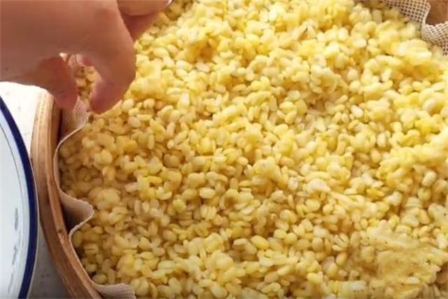 2.然后把去皮的绿豆上锅蒸20分钟,尽量不要煮,煮的话水分大,后期会增加我们炒制的时间。