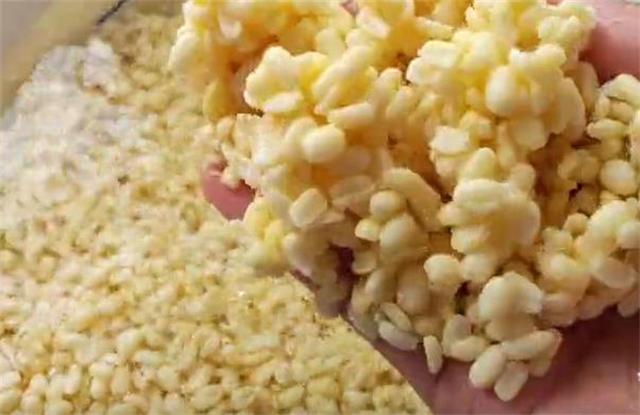 4.炒制的时候我们最好放黄油,这样味道更醇香,没有的话可以放玉米油,不建议放其他品种的油,因为别的油味道实在太重,会夺走绿豆的清香,糖的量按照个人口味添加就可以,一定要多炒一会儿,炒透出锅,水分越少这样更容易保存,不容易变酸。