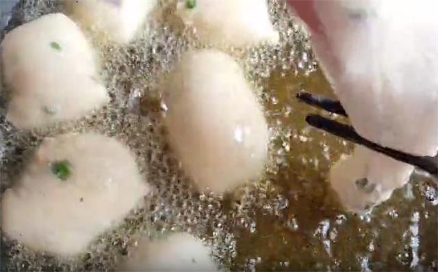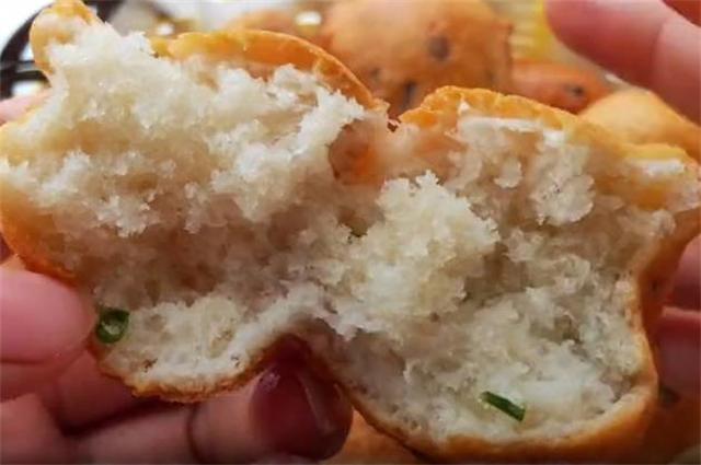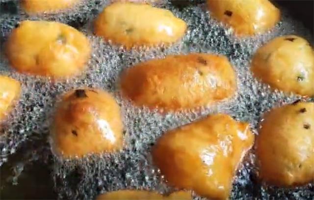 5.这个做法叫做葱油包,炸的时候一定要小火慢炸,大概炸4到5分钟,表皮金黄即可出锅。
