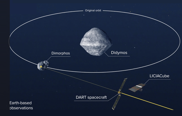 早在2012年NASA就开始筹划DART任务,欧洲航天局也参与了该项目,撞击目标是一个直径160米的小行星,它属于一个双小行星系统,围绕着更大的行星“迪迪莫斯”(Didymos)旋转。