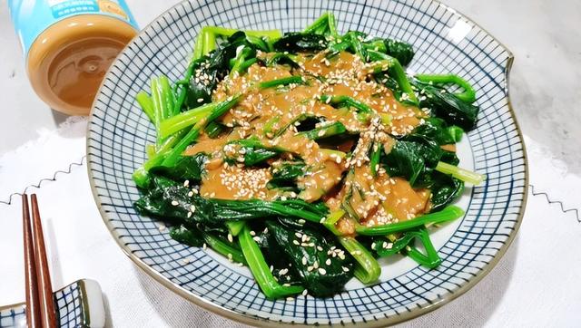 准备一块嫩豆腐和适量鱼肉(如鲫鱼、草鱼等),分别切块备用。 锅中加油烧热,放入姜片、葱段爆香。 加入鱼肉块,煎至两面金黄。 倒入适量清水,加入料酒、盐、鸡精调味。 放入豆腐块,小火慢炖至汤汁浓稠。(www.Ws46.com) 最后撒上香菜或葱花点缀即可。 四、花生酱拌菠菜 菠菜含有丰富的维生素和矿物质,尤其是铁和钙的含量较高。搭配花生酱食用,不仅增加了口感和营养价值,还能有效补充钙质。 做法: