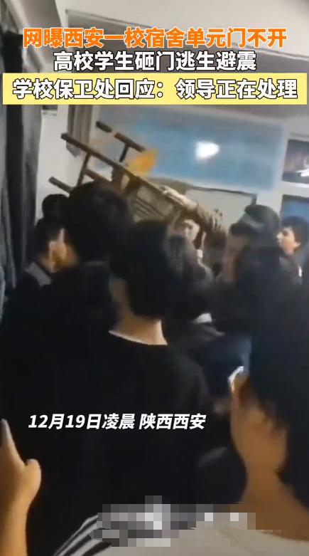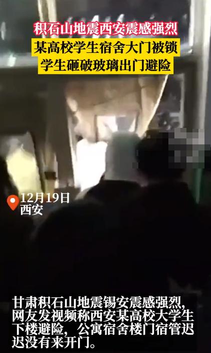 12月19日,陕西发布消息,甘肃临夏州积石山县发生了6.2级的地震,西安的震感十分强烈。这次地震让许多高校的大学生感到恐慌,纷纷下楼避险。有网友发布了一段视频,视频中某高校宿舍楼的宿管没有及时给学生开门,导致众多学生堵在门口。 在无奈之下,一些学生打碎了玻璃门,最终得以逃生。学校保卫处工作人员回应称,已经将该情况汇报给领导,目前正在处理当中。这场地震让学生们体验到了生命的脆弱,也提醒了我们在灾难面前要保持冷静,及时采取措施保护自己。