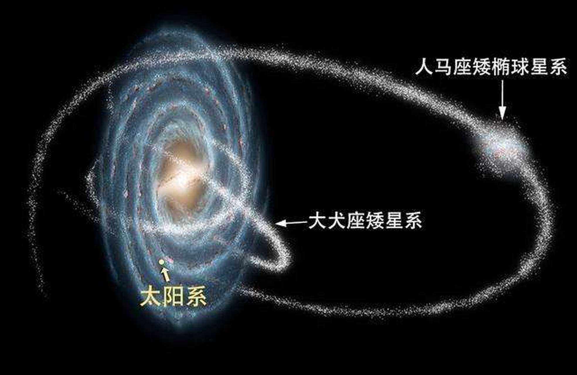 1994年,天文学家在距离地球7万光年的地方发现了人马座矮星系,它的大小只有银河系的十分之一,但是它距离银河系非常近,以至于像银河系的卫星星系一样,多年来人马座矮星系不断地靠近银河系,当时的不少科学家都认为它大概已经被银河系撕碎了,我们看到的只是留下来的残骸。