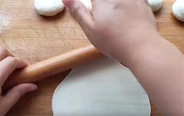 3.然后把每一个面剂揉圆按扁,用擀面杖把它擀成尽量薄一点的小饼,厚度大概2毫米就可以,一定要薄,如果厚的话就不容易鼓。