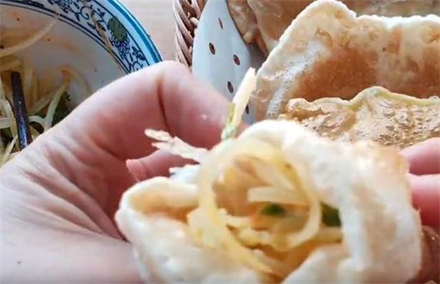 5.出锅以后它会利用自身的热度回软,这个时候我们可以用它卷菜吃,非常美味,喜欢就赶紧试试吧。 |